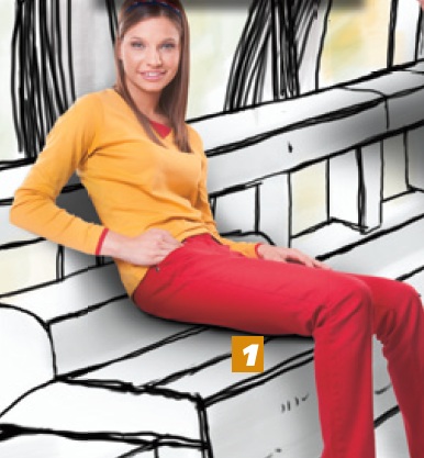 –          Ia sa vedem cum iti sta cu pantaloni rosii. Ai nevoie de culori vesele. Si o bluza galbena. Sau alba. Poti alege chiar si tu culoarea. Am mai multe la dispozitie.